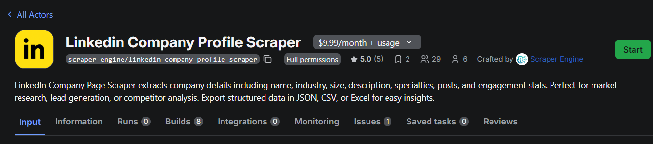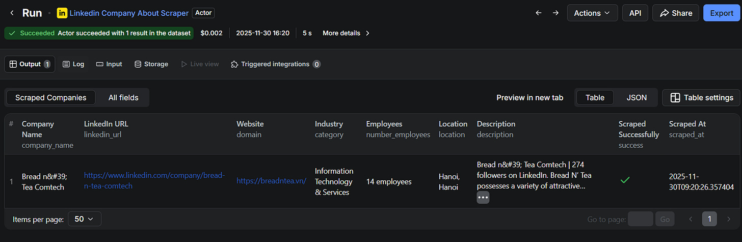 Bước 2: Gọi Apify LinkedIn Company Profile Scraper