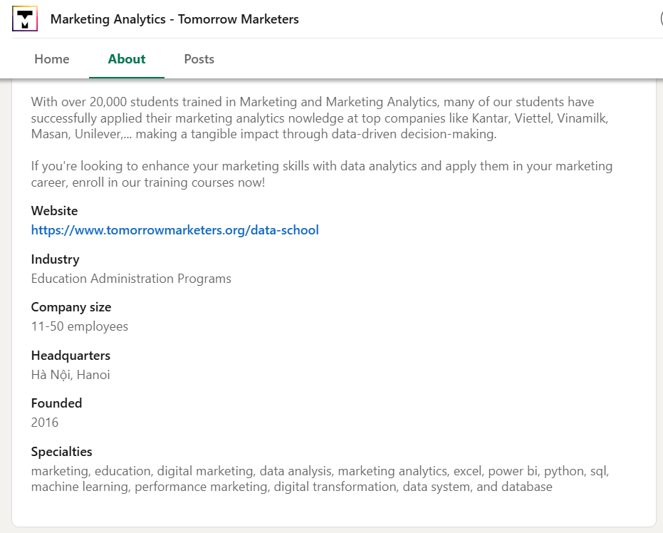 official LinkedIn page of [tên công ty] company OR school OR university OR organization