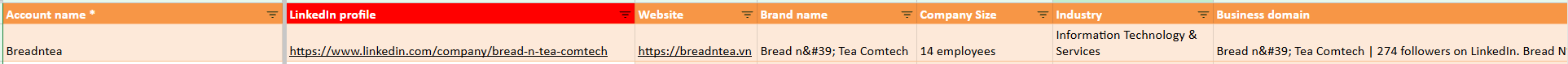 ghi thêm LinkedIn URL vào cột tương ứng
