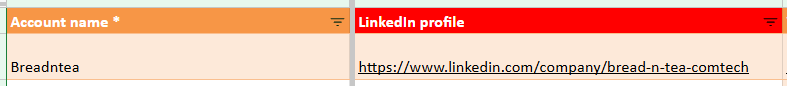 “query”: “official LinkedIn page of {{ $(’Get row(s) in sheet’).item.json[’Account name *’] }} company OR school OR university OR organization”,