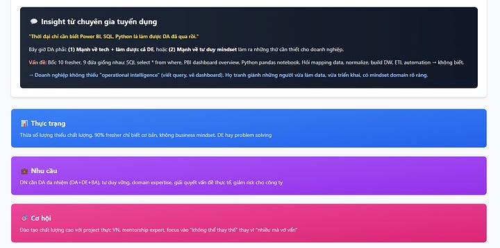 - Labor Demand: The gap between the current supply of Data Analysts and the demand from Vietnamese sectors like Finance, E-commerce, and Logistics.