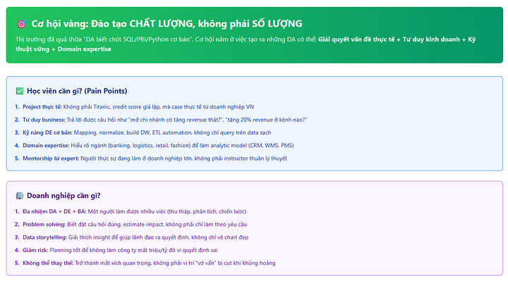 - Learner Pain Points: Research common complaints from Vietnamese learners regarding existing courses (e.g., language barriers, lack of high-quality mentorship, or projects not being 'real' enough for the local job market).