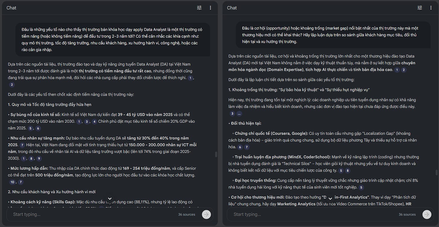 - Emerging Opportunities: How can a new brand leverage AI-integrated data analytics (AI for DA) or niche specialization (e.g., Data for Marketing or HR) to stand out in Vietnam?