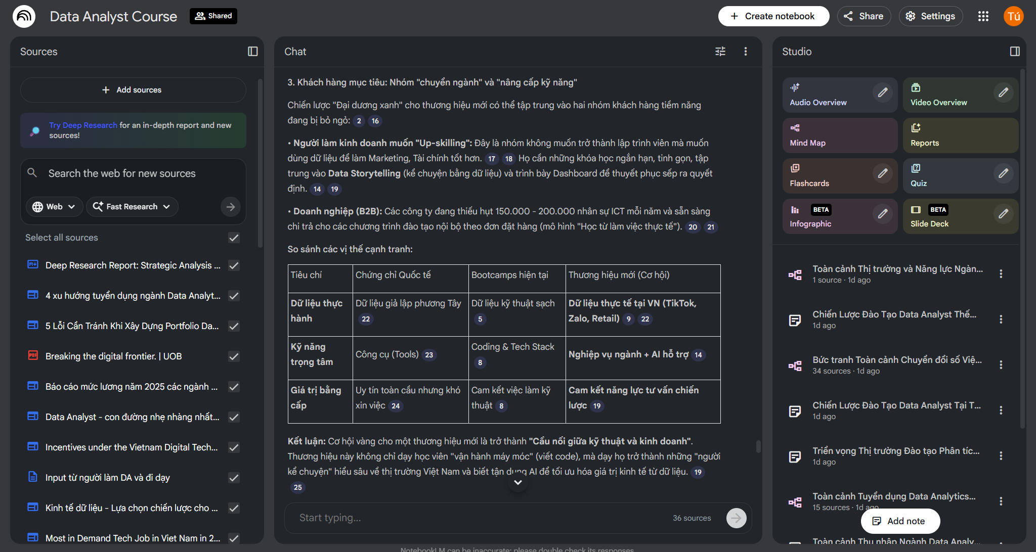 Bước 3: Tổng hợp & tra cứu thông tin với NotebookLM để ra được overview về thị trường