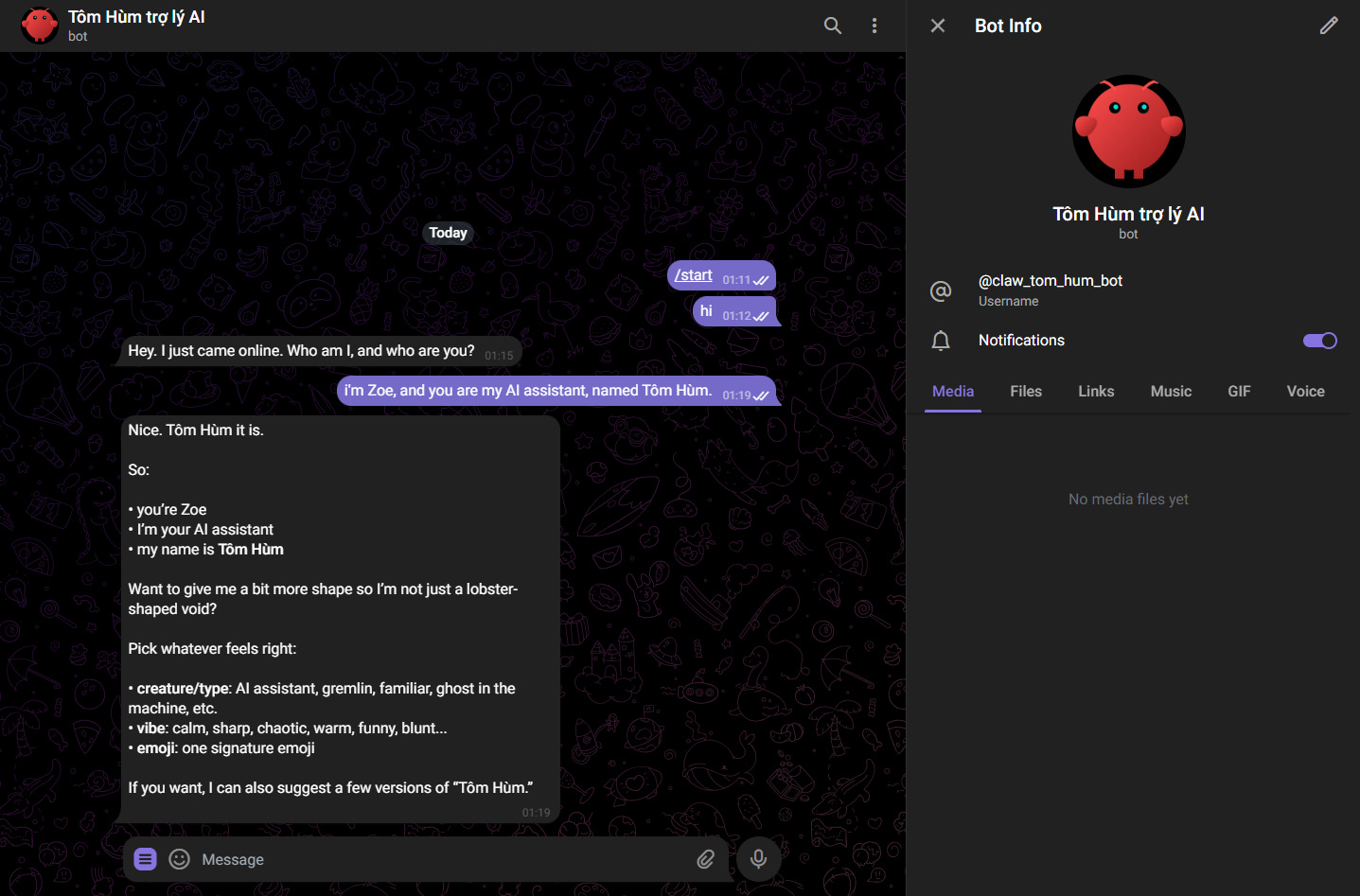 Trong máy hôm nữa mình sẽ tiếp tục mò để xem em Tôm Hùm trợ lý AI này của mình có gì hay ho để share thêm ^^