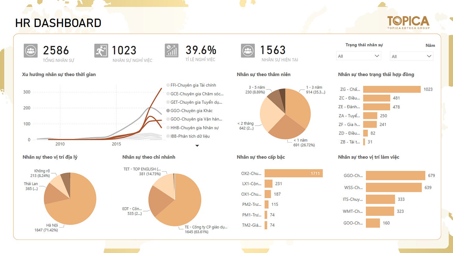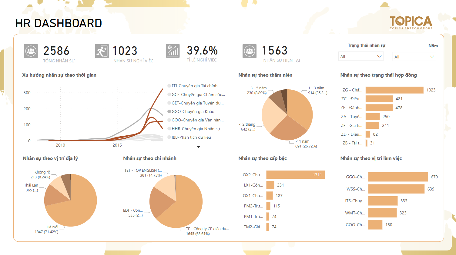Tóm tắt ngắn gọn, Project này nhằm phân tích tình hình nhân sự tại một doanh nghiệp với mục tiêu chính là giúp ban lãnh đạo nhận diện xu hướng nhân sự, đánh giá mức độ ổn định của lực lượng lao động và đề xuất các giải pháp nhằm cải thiện chiến lược quản lý nhân sự tại doanh nghiệp.